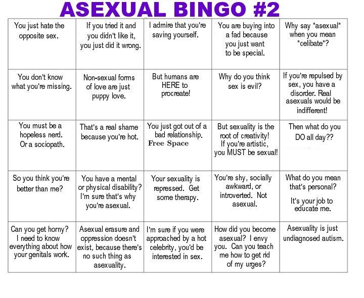 - O que mamãe pensa que faço - refere-se à noção de que assexuais são celibatários, colocando a religião acima de tudo