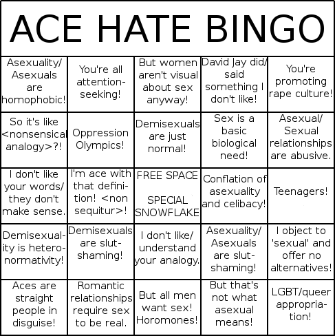 *explicando» Anéis pretos são uma espécie de "símbolo assexual", ou seja, que foi combinado para assexuais assinalarem que o são. A ironia é que, se uma pessoa que reconhece o símbolo vê alguém a usar um anel preto, não consegue saber se a pessoa é ace ou se foi só coincidência.