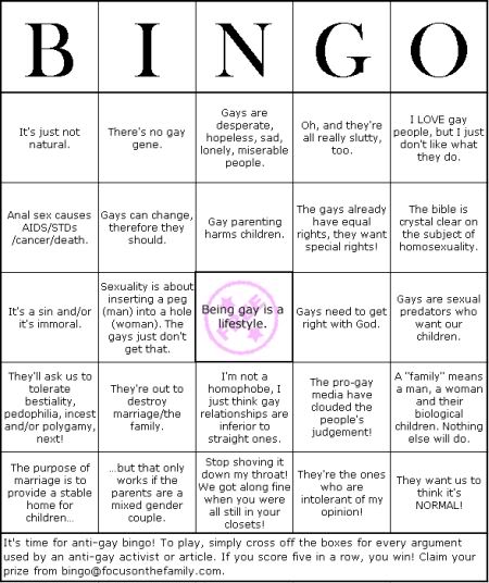 *quadros de bingos sobre coisas pejorativas que todas as pessoas de determinada sexualidade ouvem ao longo da vida, algumas coisas tão ilógicas que chegam a ser hilárias.